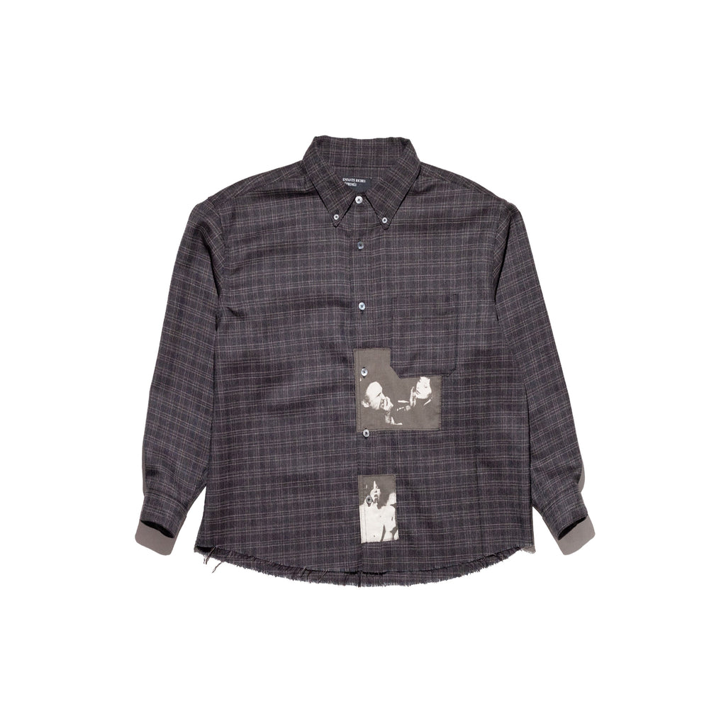 The Assemblage Flannel (Charcoal) from Enfants Riches Déprimés is a button-down shirt crafted from premium Italian virgin wool, offering both comfort and refined structure. Printed artwork patches are applied throughout, giving the piece a distinct, deconstructed aesthetic that reflects the brand's avant-garde identity. Made in the USA, this flannel blends luxury materials with expressive detailing for a look that is bold, elevated, and unmistakably individual.