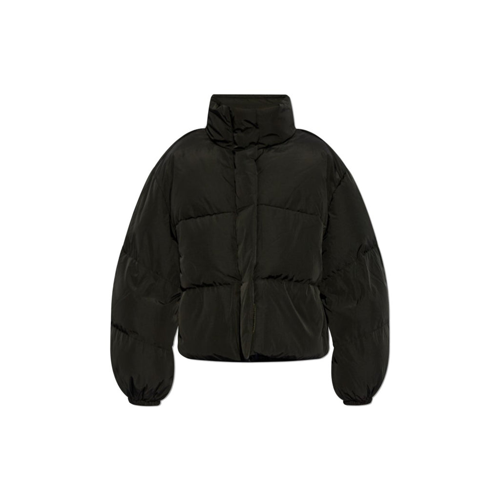 The puffer down jacket from Acne Studios is made from recycled nylon material with filling made of recycled down and feathers. It features a sprayed finish and a branded logo on the back neckline, as well as a center front zipper and Velcro placket. It has an adjustable internal drawcord hem and is cut to a relaxed fit, with slightly dropped shoulders and hip-length.