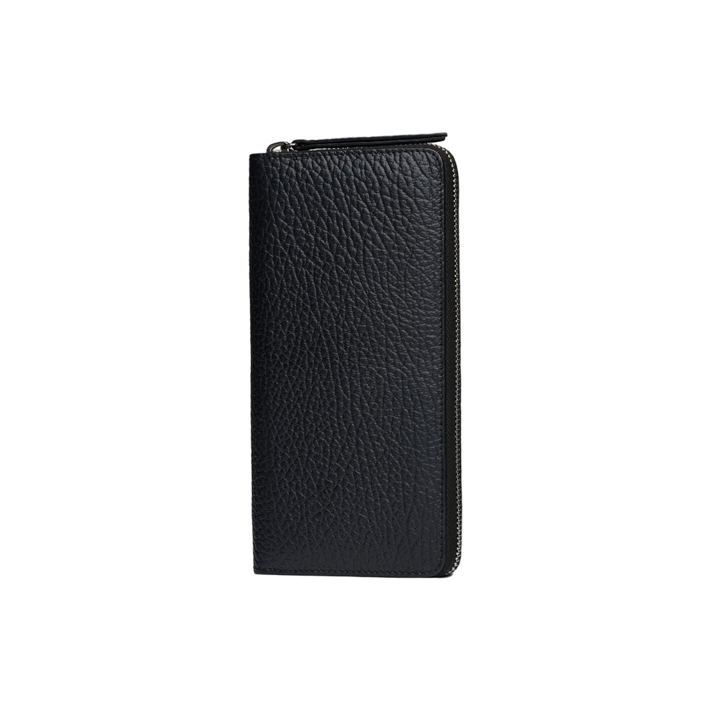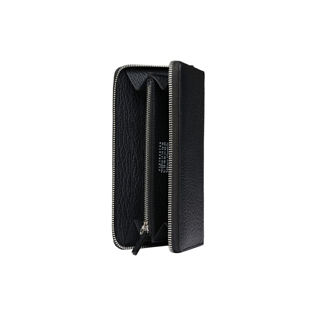 The Four Stitches Zip-Around Wallet (Black) by Maison Margiela is crafted from embossed grainy leather, combining refined texture with everyday functionality. The design features an inner zipped coin compartment, multiple card holders, and the numeric logo discreetly embossed inside. At the back, Maison Marguelas' signature four stitches serve as a subtle emblem of the brand's minimalist aesthetic — the inverse of a label and a mark of quiet sophistication.