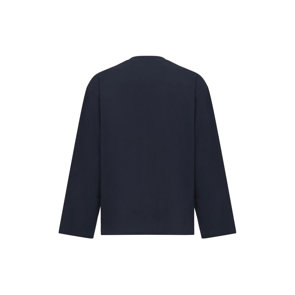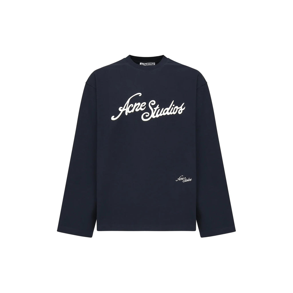 The Logo Relaxed Fit T-shirt in Deep Blue by Acne Studios has a unisex crew neck design made of midweight cotton jersey with a garment-dyed finish, creating a soft, lived-in feel. The shirt has a relaxed silhouette and a hip-length cut. It features a subtle 3D logo embroidered at the chest, designed by Acne, which adds a touch of personality to the shirt. This versatile T-shirt combines comfort and subtle branding to become a staple in modern wardrobes.