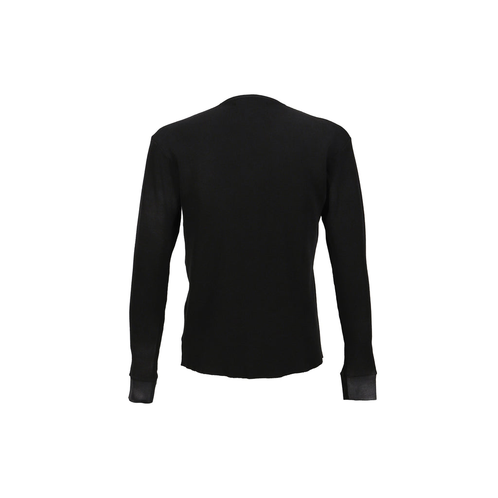 Logo Thermal (Washed Black) by Satoshi Nakamoto brings a refined sense of intention to everyday wear, built for those who appreciate subtle texture and thoughtful layering. Crafted from 100% cotton in a washed black finish, it carries a modern, grounded aesthetic with a soft vintage character that feels effortless yet purposeful. The relaxed fit and classic crewneck create an easy silhouette for versatile styling, while ribbed cuffs add structure and comfort to the sleeves. Finished with a clean logo detail, this thermal long sleeve elevates your rotation with quiet confidence and a composed presence that adapts seamlessly to casual outfits or layered looks. Designed to be a staple that speaks through feel, balance, and understated style, it delivers comfort you can live in and a look that stays relevant beyond the moment.
