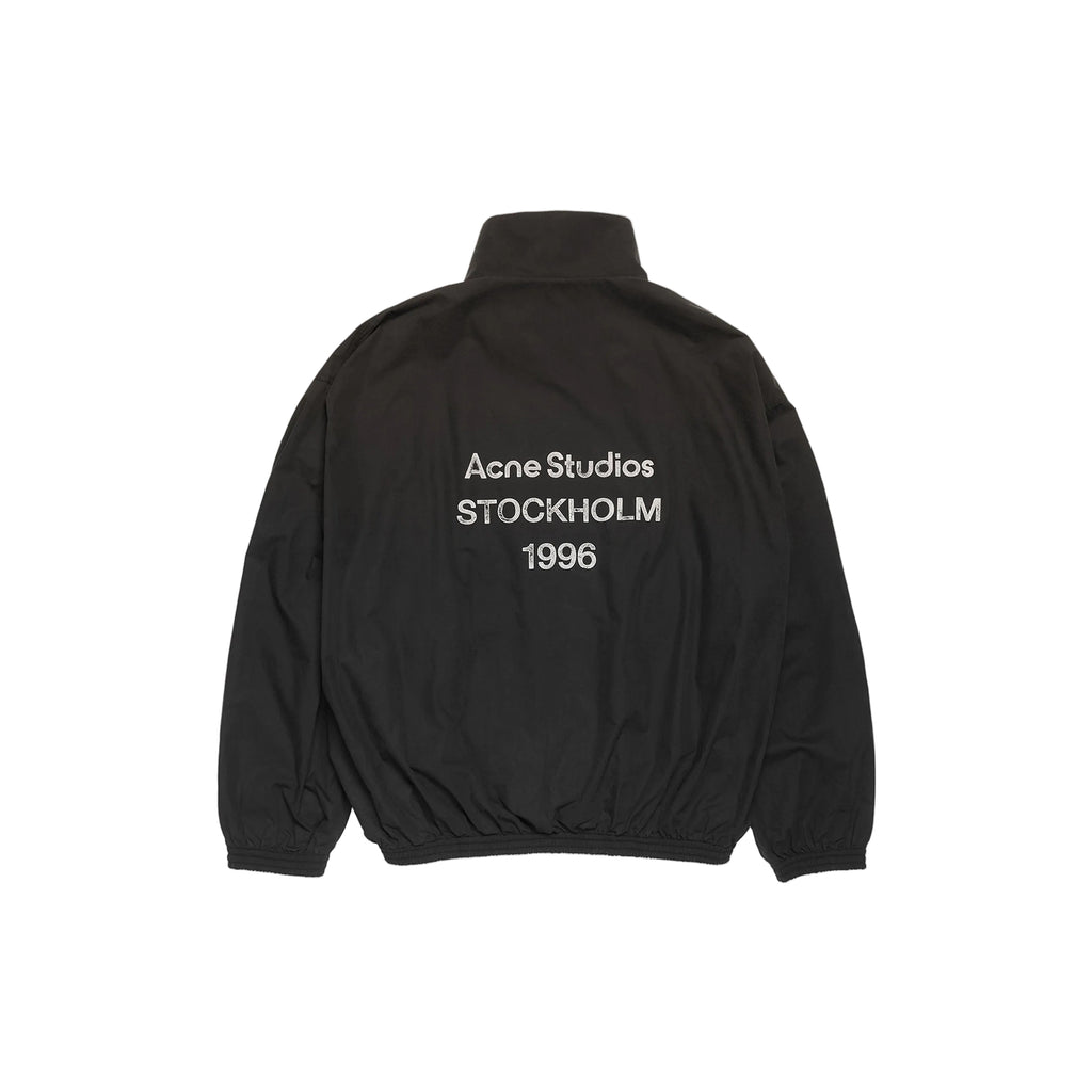 The Logo Zipper Jacket by Acne Studios in Black is crafted from lightweight cotton poplin with a washed finish, offering a relaxed and contemporary feel. Designed with a comfortable, relaxed fit and hip-length cut, it features a center front zipper closure and practical side seam pockets for everyday use. Elasticated cuffs and a hem enhance comfort and structure, while a fully lined interior provides a refined finish. The contrast Acne 1996 logo on the back adds bold yet subtle signature detail, making this versatile jacket a layering piece with a modern edge.