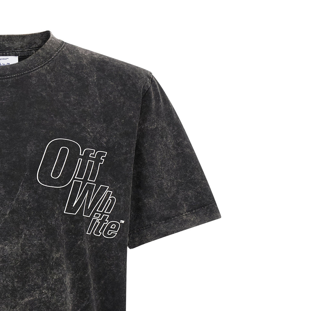 The Outline Arrow Slim Short Sleeve Tee in Vintage Black by Off-White™ is crafted from soft 100% cotton jersey and designed with a slim fit and a washed vintage finish, creating a lived-in and effortless look. On the front, there is a minimalist Off-White logo, and on the back, the brand's iconic Outline Arrow graphic is featured in white. This versatile piece is made in Portugal and is perfect for everyday wear, especially for those who enjoy modern streetwear aesthetics.