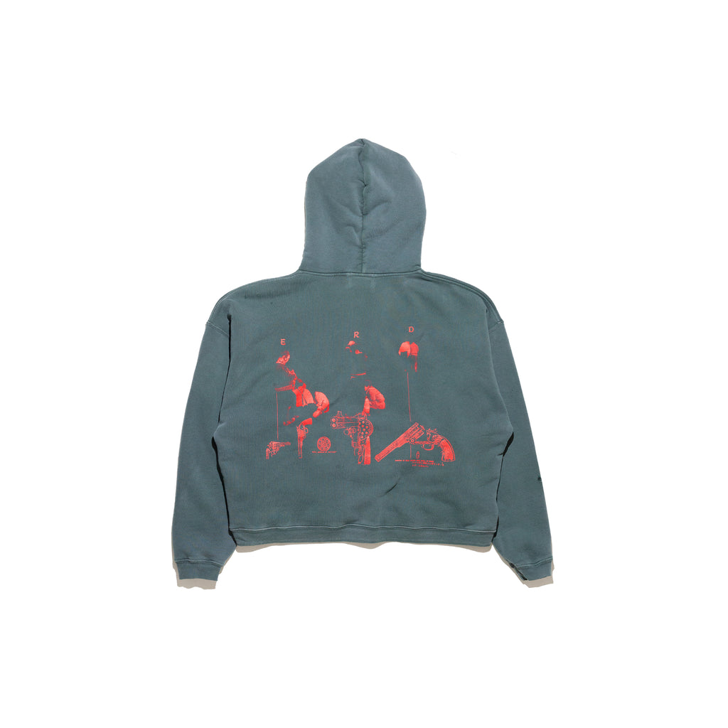 The Psychothérapie de l'adolescent hoodie in antique green by Enfants Riches Déprimés channels the brand's introspective, avant-garde spirit through elevated construction and a lived-in aesthetic. Crafted in the USA from heavy-weight brushed French terry, this pullover hoodie offers a boxy, drop-shoulder fit that balances comfort with a distinct, nonchalant silhouette. The double-layered hood and ribbed cuffs and waistband provide structure and durability, while the printed artwork on the front and back reflect the label's psychological and artistic themes. Finishing with the vintage wash process of Enfants Riches Deprimés, each piece has a uniquely worn character - a fusion of raw emotion and refined craftsmanship.