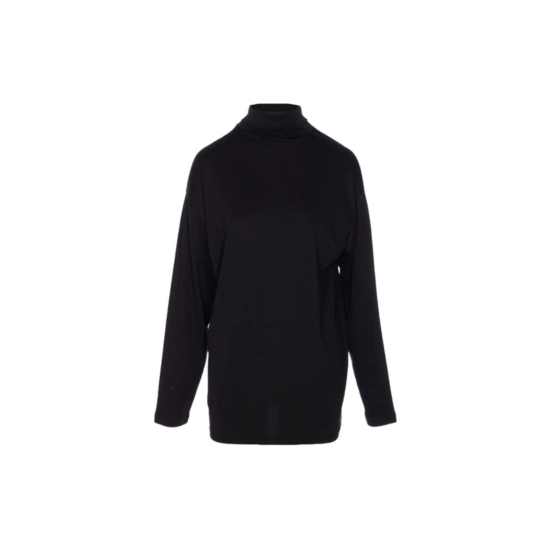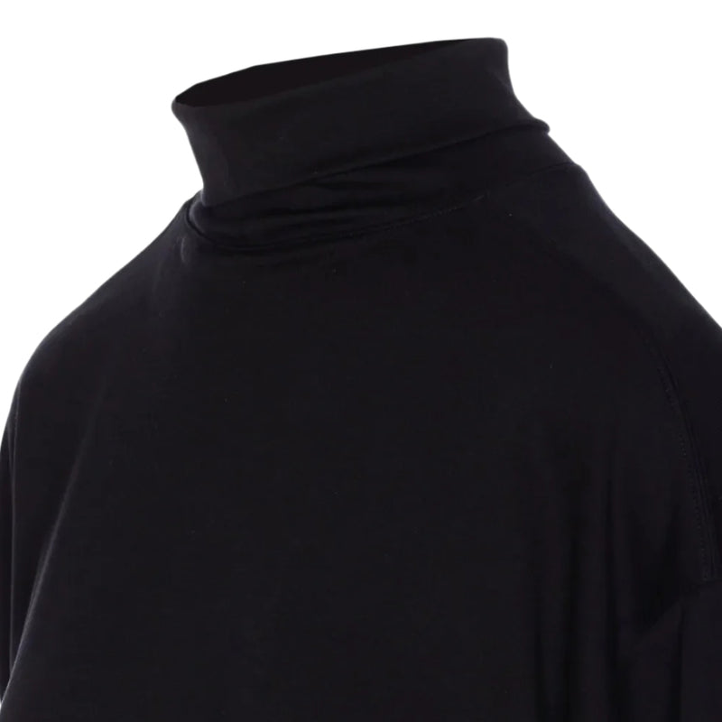 The Lemaire Relaxed Mock Neck T-shirt in Black is a refined essential for any modern wardrobe. Crafted in Portugal from a luxurious cotton and silk-blend interlock jersey (80% cotton, 20% silk), it offers a soft, breathable feel with a subtle sheen. The design features a relaxed straight cut, a mock neck, and long sleeves, combining casual elegance with everyday comfort. With its minimalist silhouette and premium fabric, this piece embodies Lemaire's signature understated sophistication.