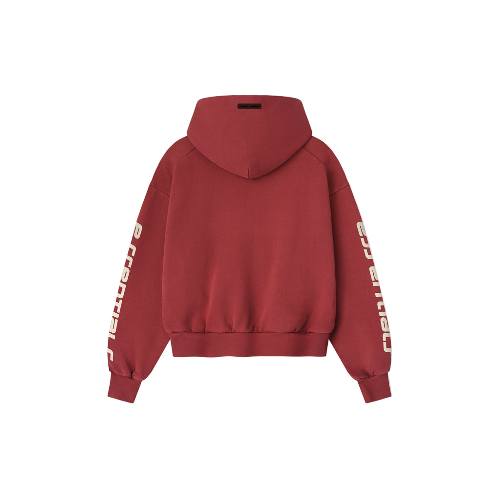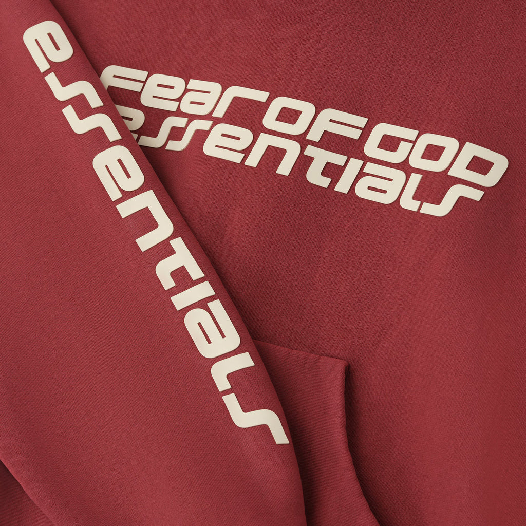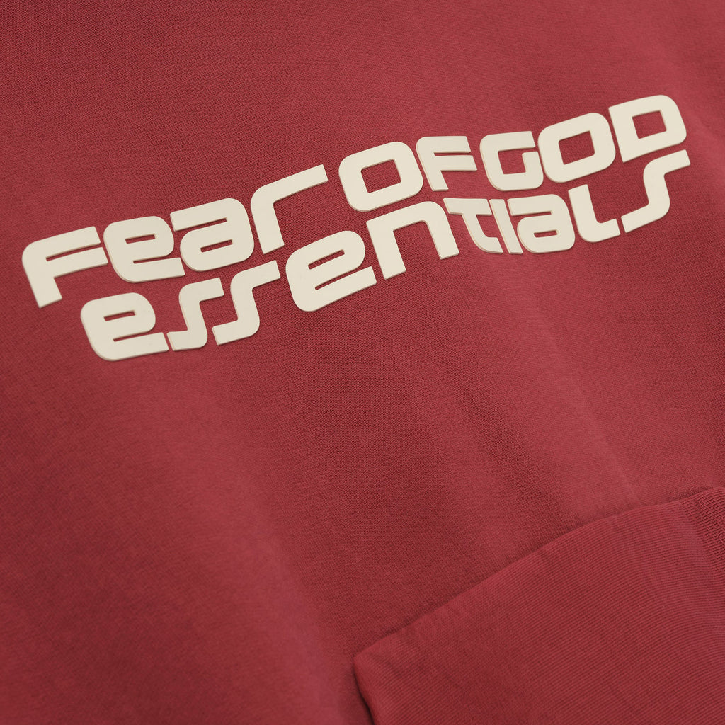 The Fear of God Essentials Women's Classic Hoodie in Crimson is made from heavyweight 520 GSM cotton fleece, with a relaxed, cropped fit and dropped shoulders. It features bold HD graphics, kangaroo pockets, rib-knit cuffs and hems, and a subtle Essentials label, for a comfortable, streetwear-ready look.