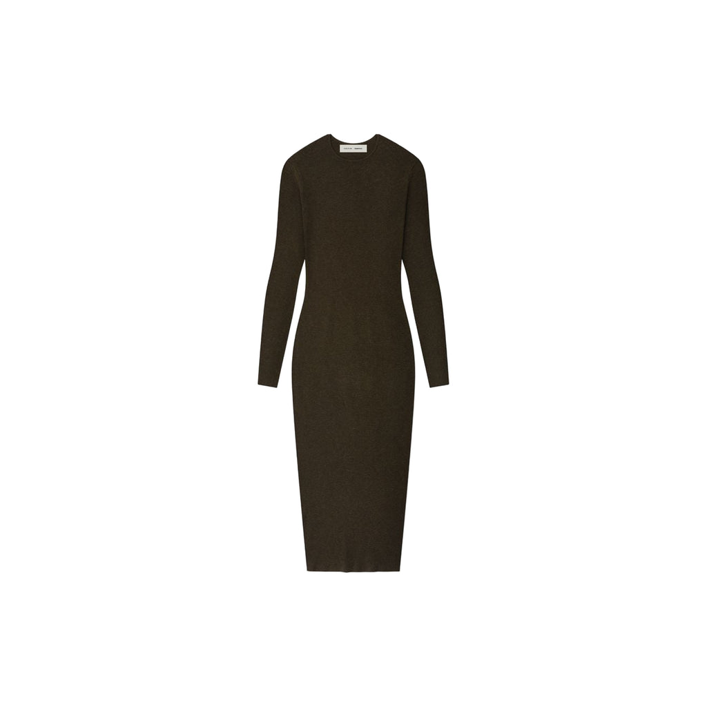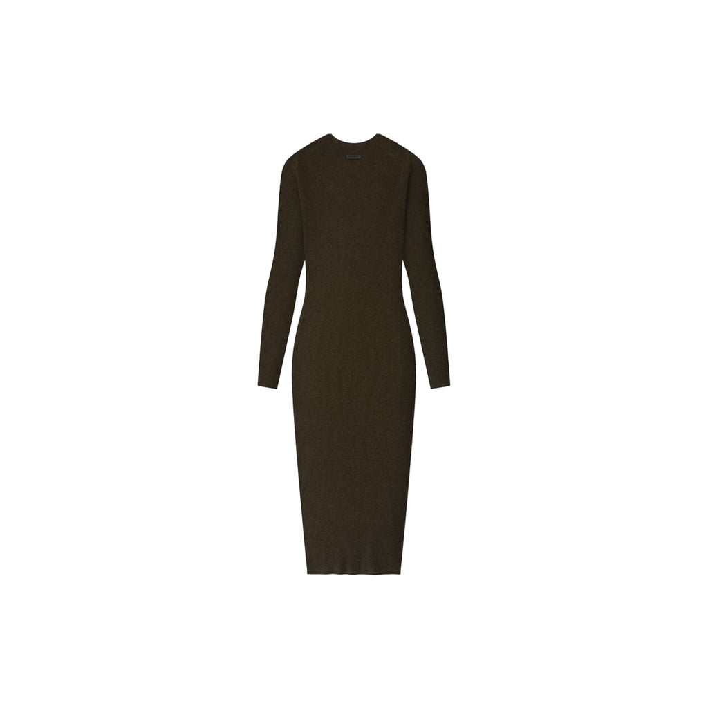 The Fear of God Essentials Women's Rib Long Sleeve Dress in Brown is crafted from soft poly-nylon rib knit for a subtle texture and comfortable fit. Featuring a form-fitting, ankle-length silhouette, a rib-knit crew neckline, long sleeves, and a discreet back label, this dress offers a sleek and versatile look that can be worn as a standalone piece or layered with other garments.