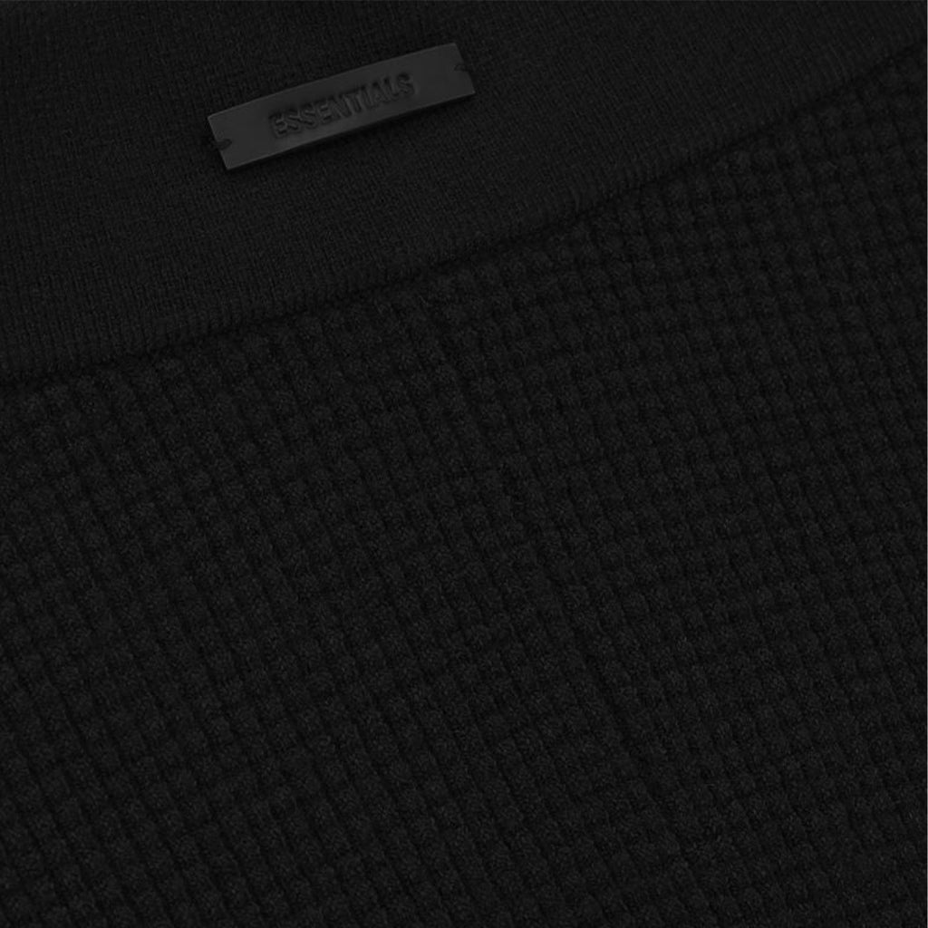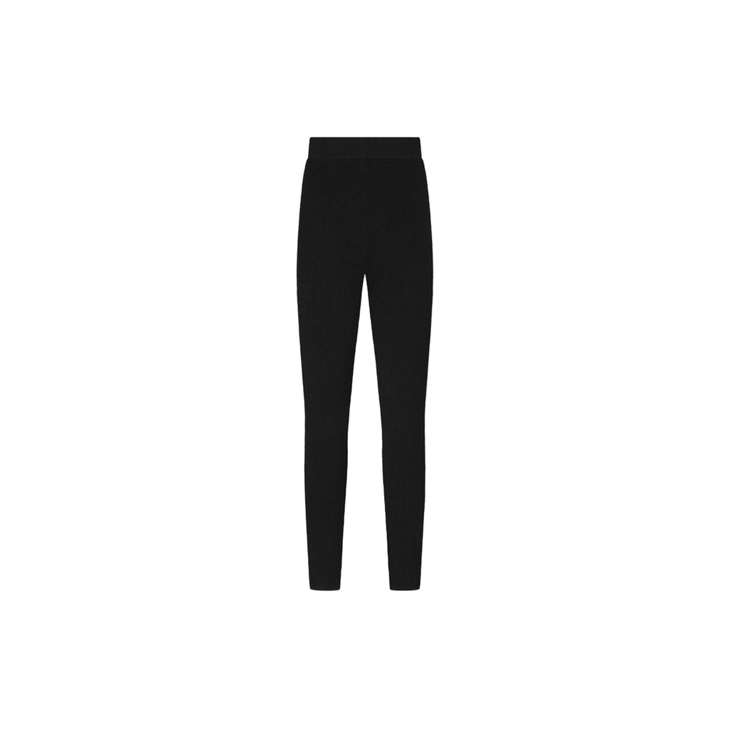 The Fear of God Essentials Women's Vintage Black Waffle Leggings are made from soft, stretchy 88% polyester and 12% nylon waffle knits. Featuring a form-fitting ankle-length silhouette with ribbed elastic waistbands, they can be worn alone or layered and finished with a subtle rubberized label for a clean and elevated look.